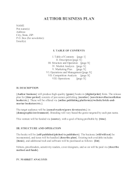 Sample text from Author Business Plan: