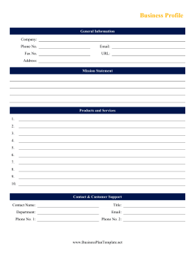 Perfect for pitching business ideas, this company profile includes general contact information as well as summaries of products and services.
