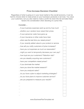 Sample text from Price Increase Decision Checklist: